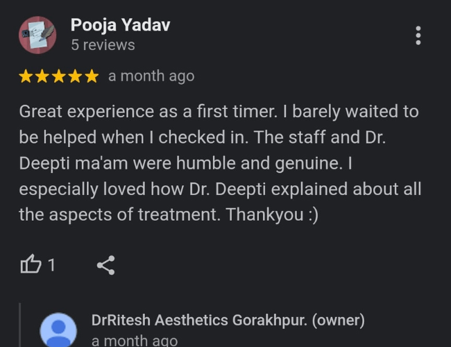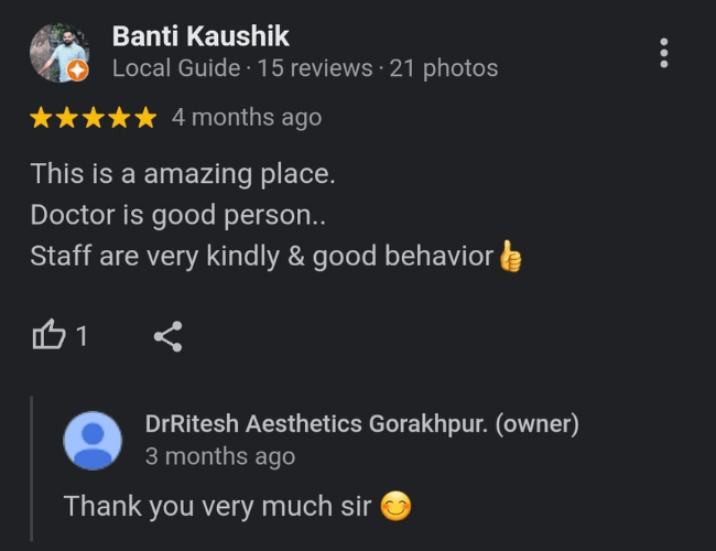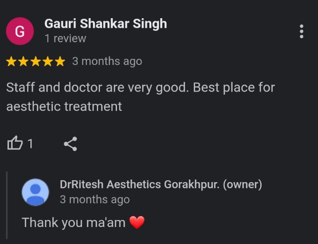 Look no further than Dr Ritesh Aesthetics in the heart of Gorakhpur. We are your trusted destination for personalized aesthetic services, Also we embrace innovation to deliver results that exceed expectations, leaving you not just looking stunning but feeling unstoppable.
